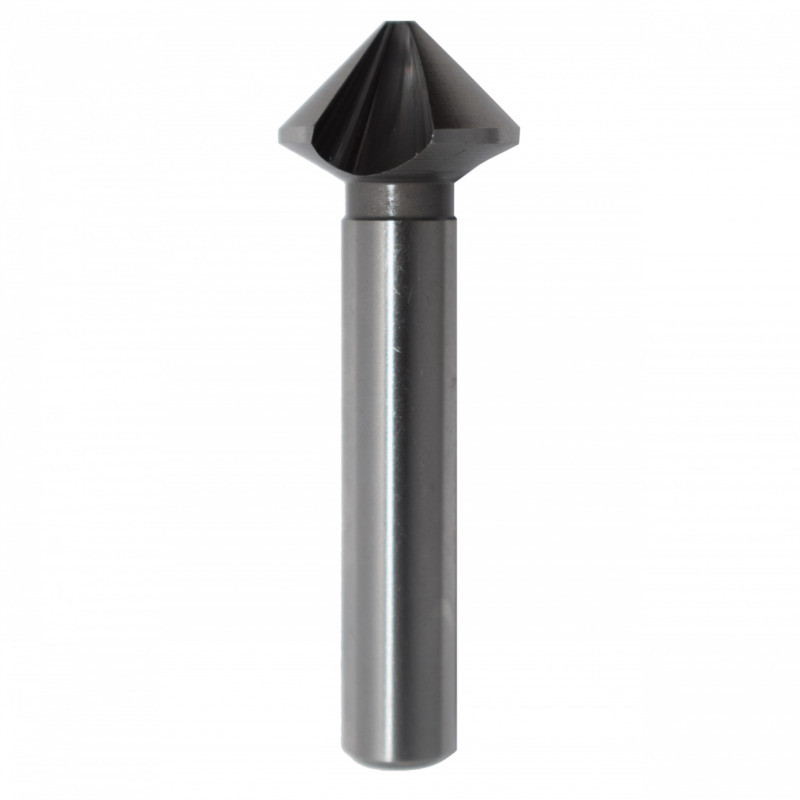 Kúpos süllyesztő CBN köszörülési eljárással HSS gyorsacélból, 3 db 90°-os vágóéllel, DIN 335-C szabvány szerint, hengeres szárral.