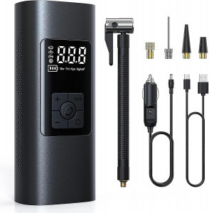 Vezeték nélküli és hordozható pumpa/kompresszor, négy nyomásegységgel rendelkezik: PSI, KPA, BAR és KG/CM2