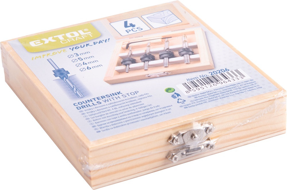 EXTOL CRAFT fafúró klt. 4db, süllyesztővel (konfirmátor csavar előfúró) 3-4-5-6mm, hossz 76-94mm, fadobozban