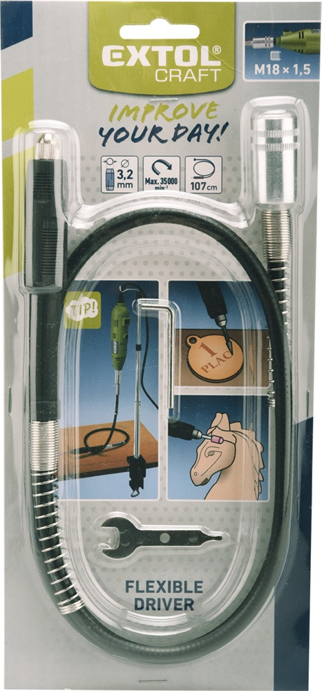 EXTOL CRAFT flexibilis szár, M18×1,5 mm; tokmány: 3,2 mm, hossz.: 107cm, max. 35000f/perc, a 404111 és 404116 mini köszörűgéphez