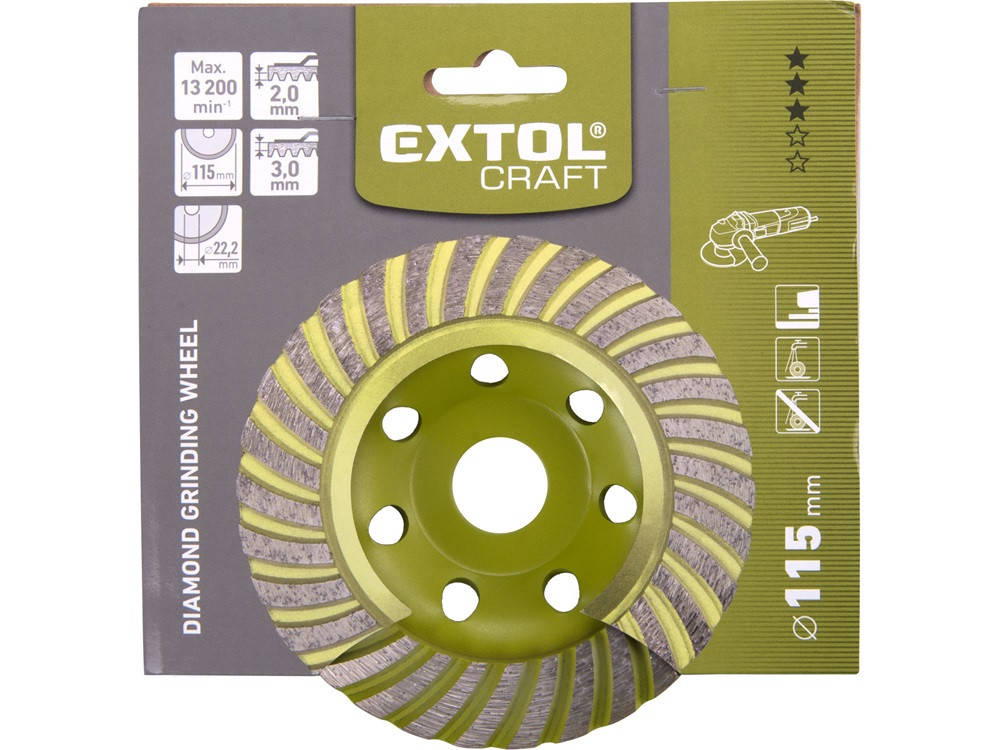 EXTOL CRAFT gyémántcsiszoló korong; 115mm×22,2mm, Turbo/lamellás jellegű