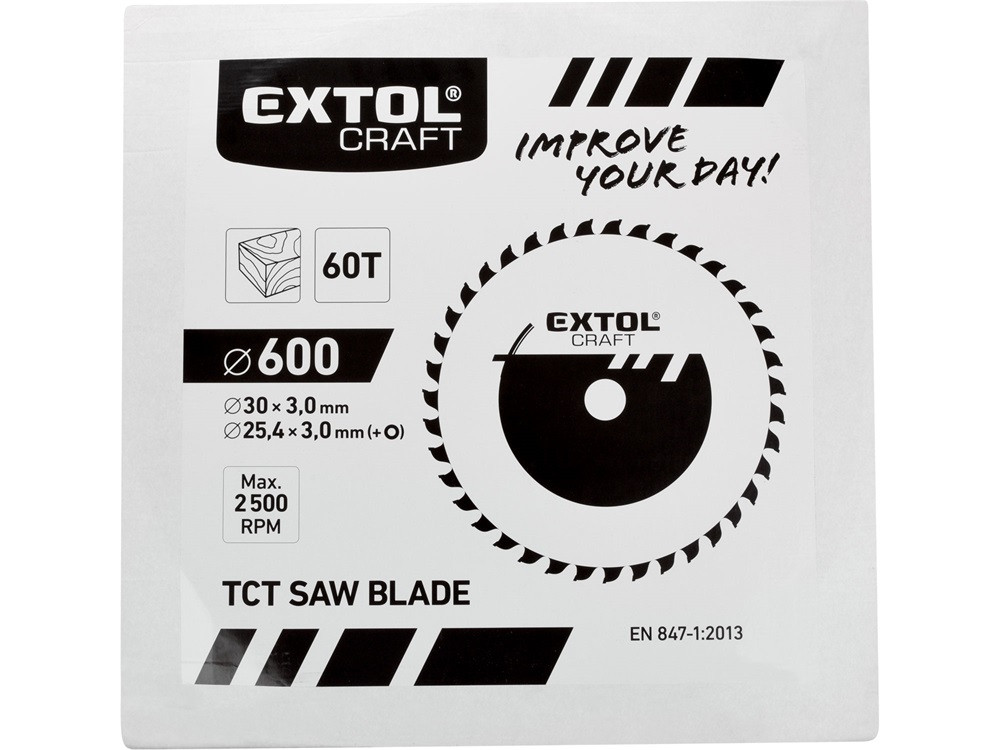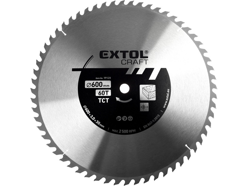 EXTOL CRAFT körfűrészlap, keményfémlapkás, 600×30mm(lyuk átm), T60; 3,8 mm lapkaszélesség, max. 2.500 ford/perc