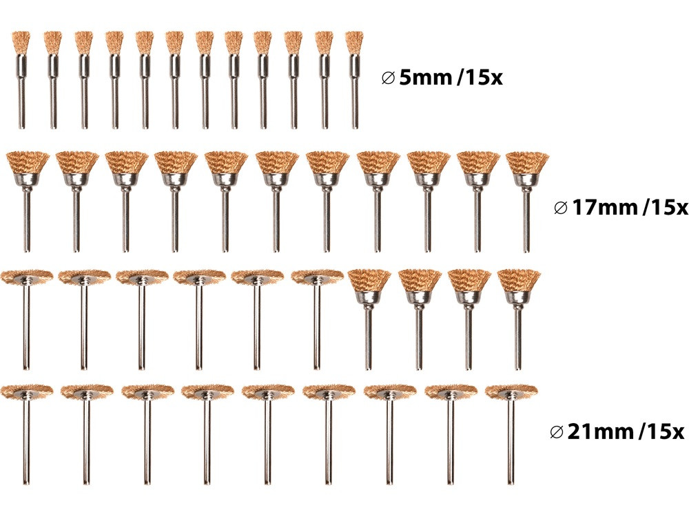 EXTOL CRAFT mini drótcsiszoló klt. 3,2 mm befogás, 45 db, 3 féle fazékkefe fejforma, rezezett acélszál