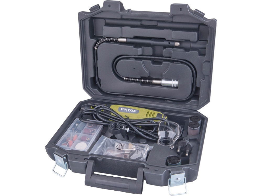 Az EXTOL CRAFT egyenes mini köszörű hobbi jellegű szerszám. Házi barkácsolási munkákhoz használható, fémek, műanyagok, fa és apró anyagok megfelelő megmunkáló toldat segítségével végzett finommegmunkálására.