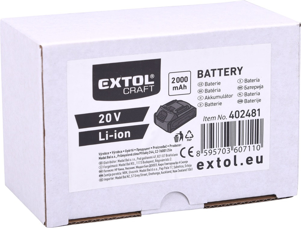 EXTOL CRAFT tartalék akku Extol Craft Li-ion 20 V, 2000 mA