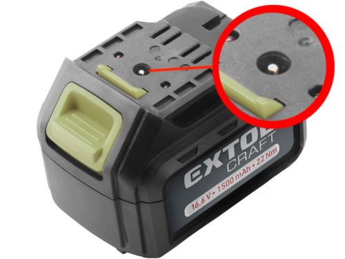 EXTOL CRAFT tartalék akku RÉGEBBI TÍPUSÚ 402420 Li-ion töltőhöz, 2 SARU+1 TÜSKE; 16V, 1500mAh, töltési idő: 5,5 óra