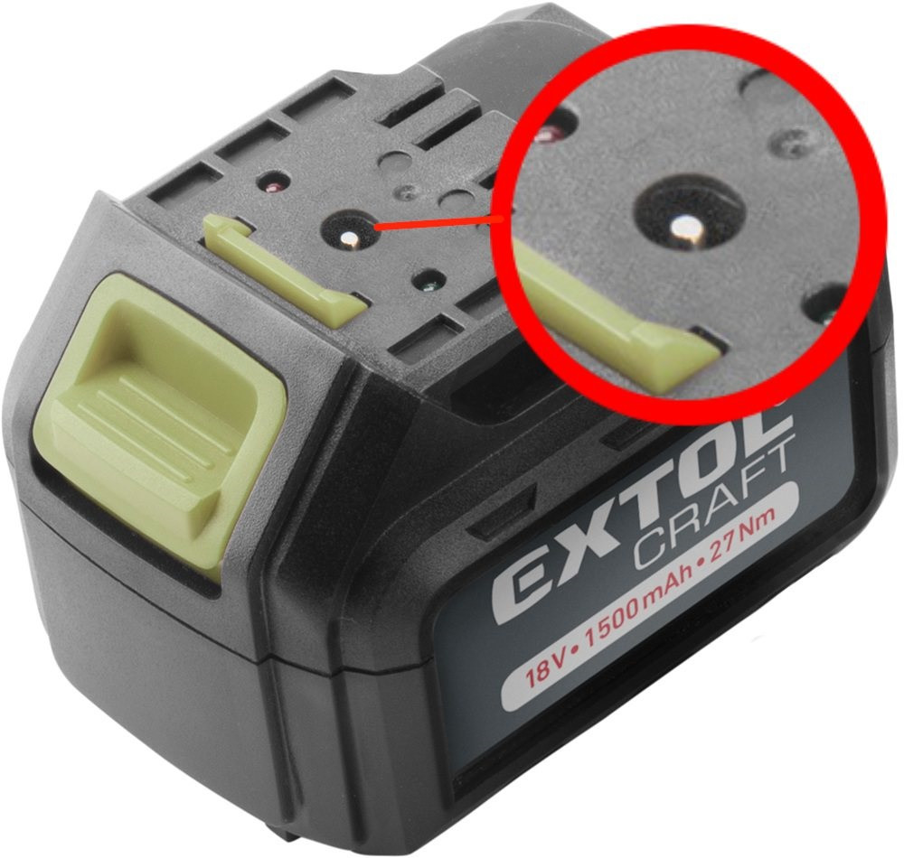 EXTOL CRAFT tartalék akku RÉGEBBI TÍPUSÚ 402440 Li-ion töltőhöz, 2 SARU+1 TÜSKE; 18V, 1500mAh, töltési idő:1 óra