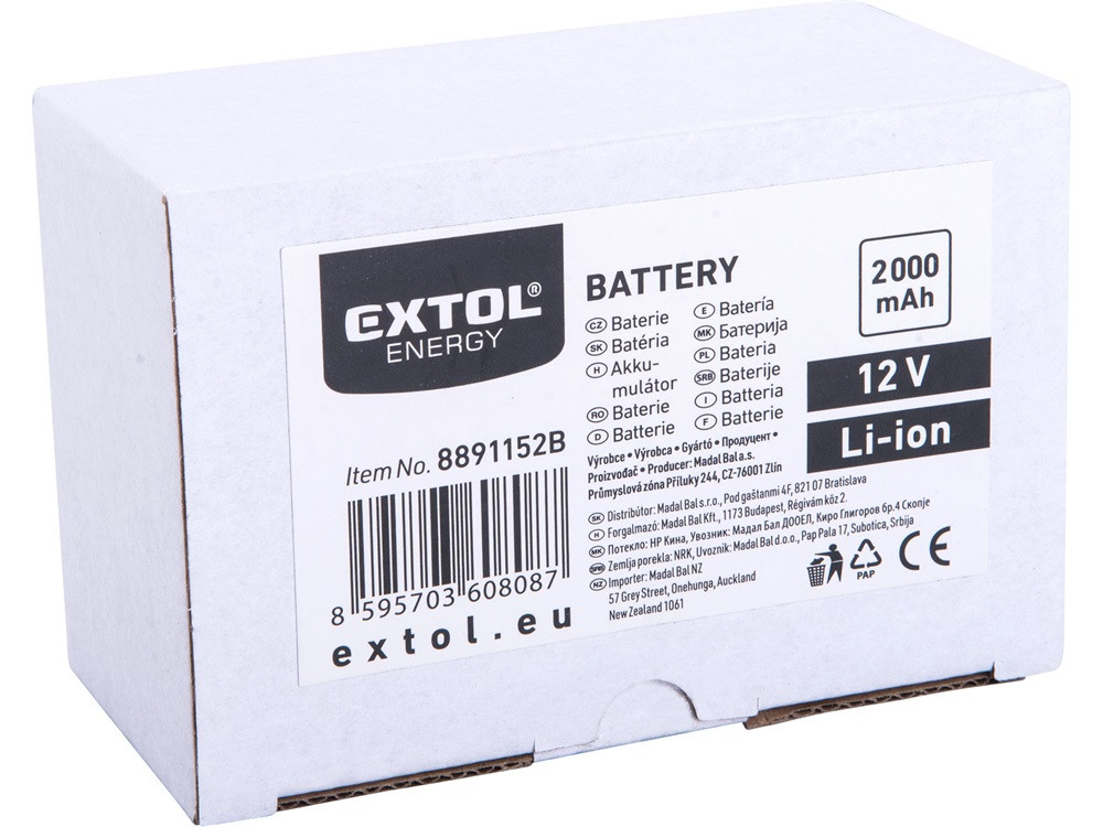 EXTOL ENERGY tartalék akku, 12V, Li-ion, 2000mAh, a 8891152 géphez