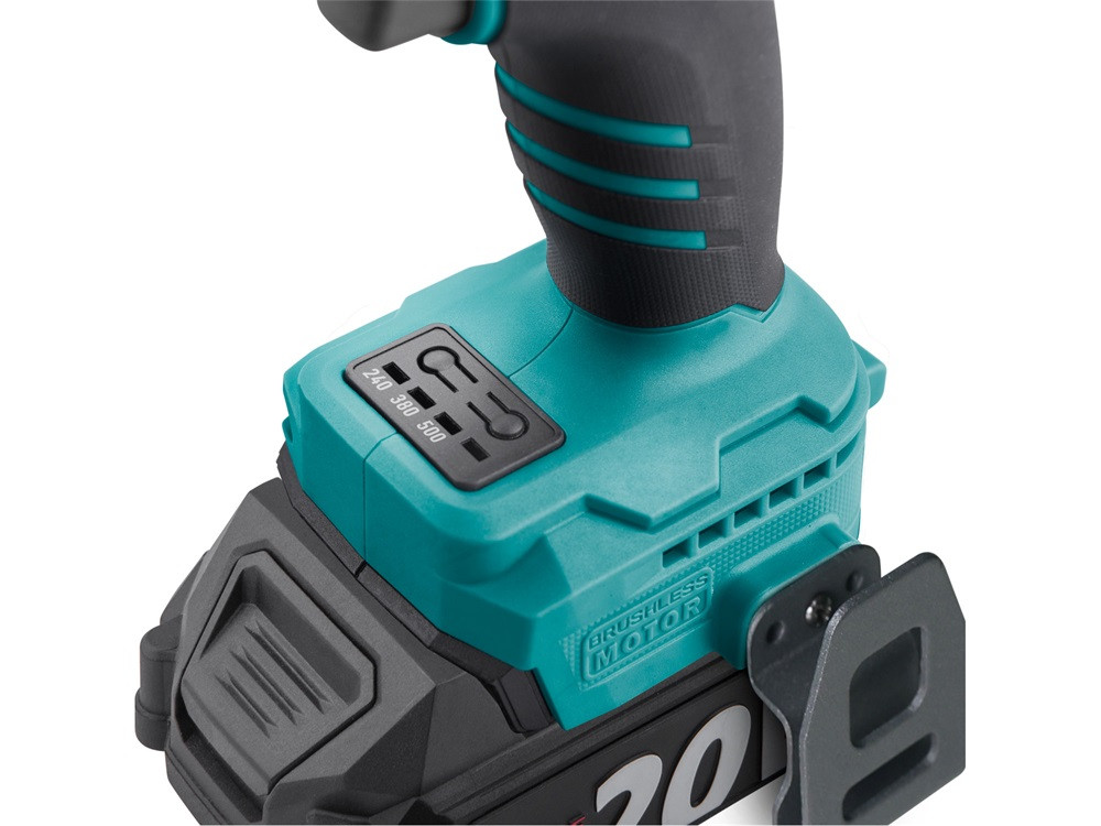 EXTOL INDUSTRIAL akkus ütvecsavarozó, Share20V, 1/2" szénkefe mentes, négyszög, Li-ion; 20V akku: 2Ah, töltő, 500 Nm