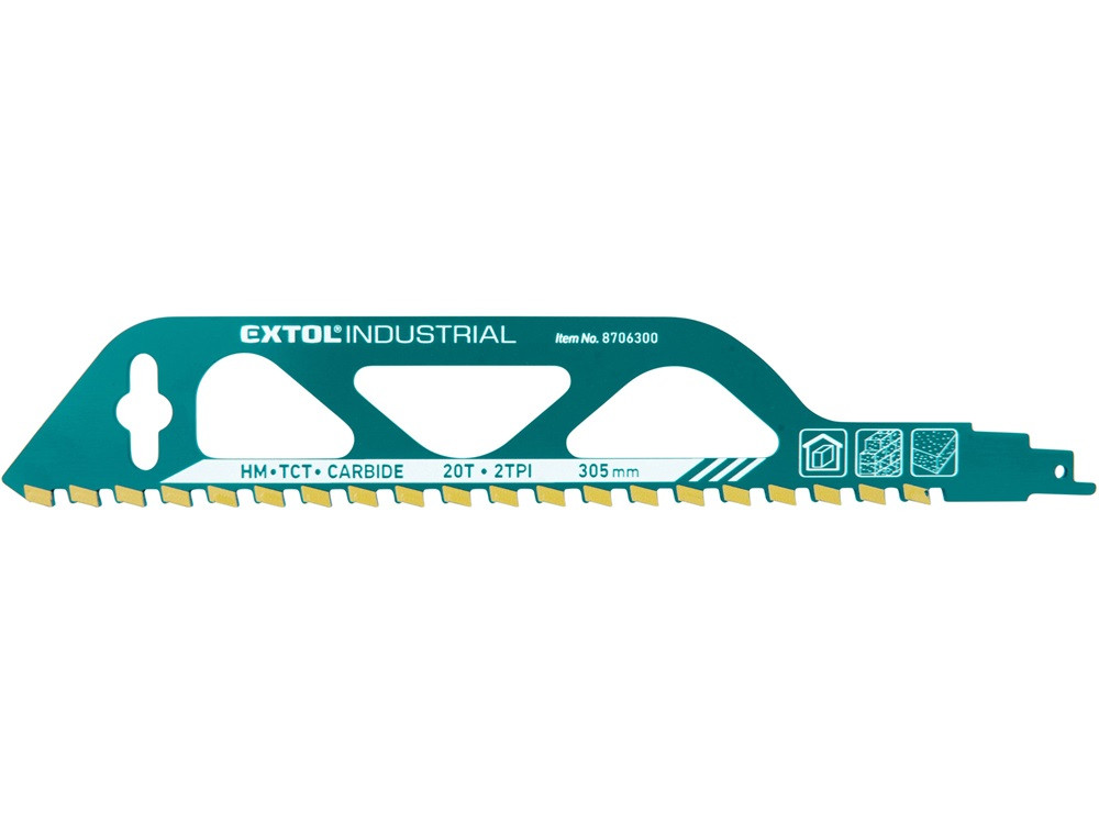 EXTOL INDUSTRIAL szablyafűrészlap 1db, Bosch befogás, HM/TCT fogak, 305 mm, 2TPI, gázbetonhoz, egyenes, durva vágás