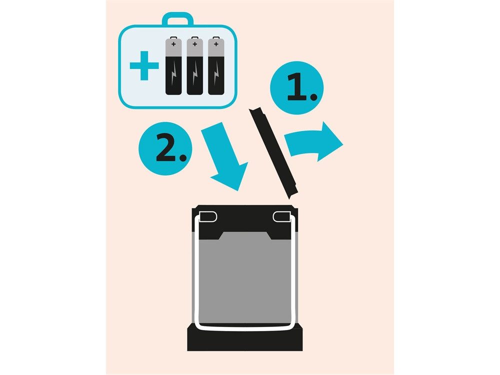 • A lámpa testében van egy tárolórekesz a tartalék elemeknek.