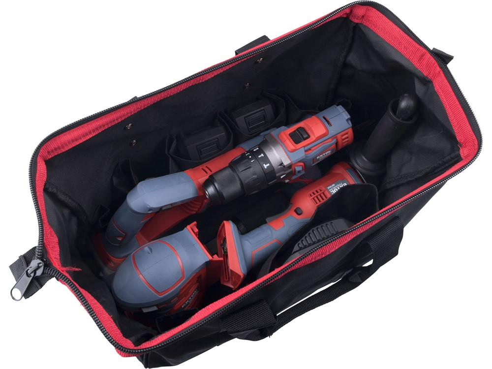 EXTOL PREMIUM akkus gépszett Share20V, táskában, 7db-os: fúró, sarokcsiszoló, szablyafűrész, rotációs csiszoló, 2db akku, töltő