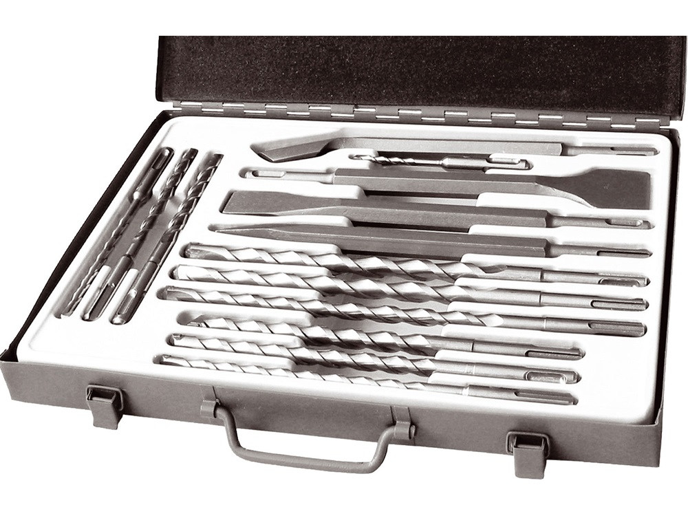 EXTOL PREMIUM betonfúró és véső klt. SDS PLUS; 14db, 5/110mm, 6,8,10/160mm, 8,10,12/210mm, 10,12,14/260mm, lapos 20,40, hegyes, horony