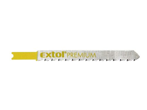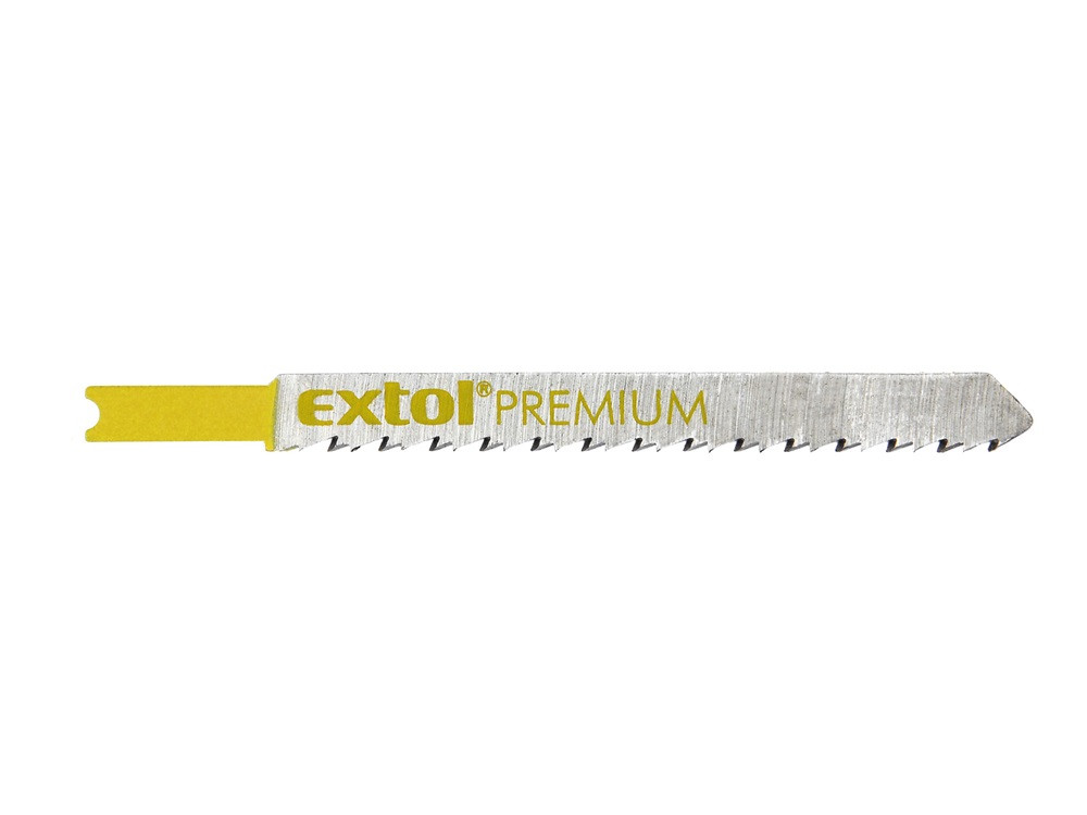 EXTOL PREMIUM dekopírlap, 5db, univerzális befogás, HCS; 75×8×1,5mm, 2,5mm fogtáv, kösz.fogak, tiszta egyenes vágás, puhafa, farostlemez
