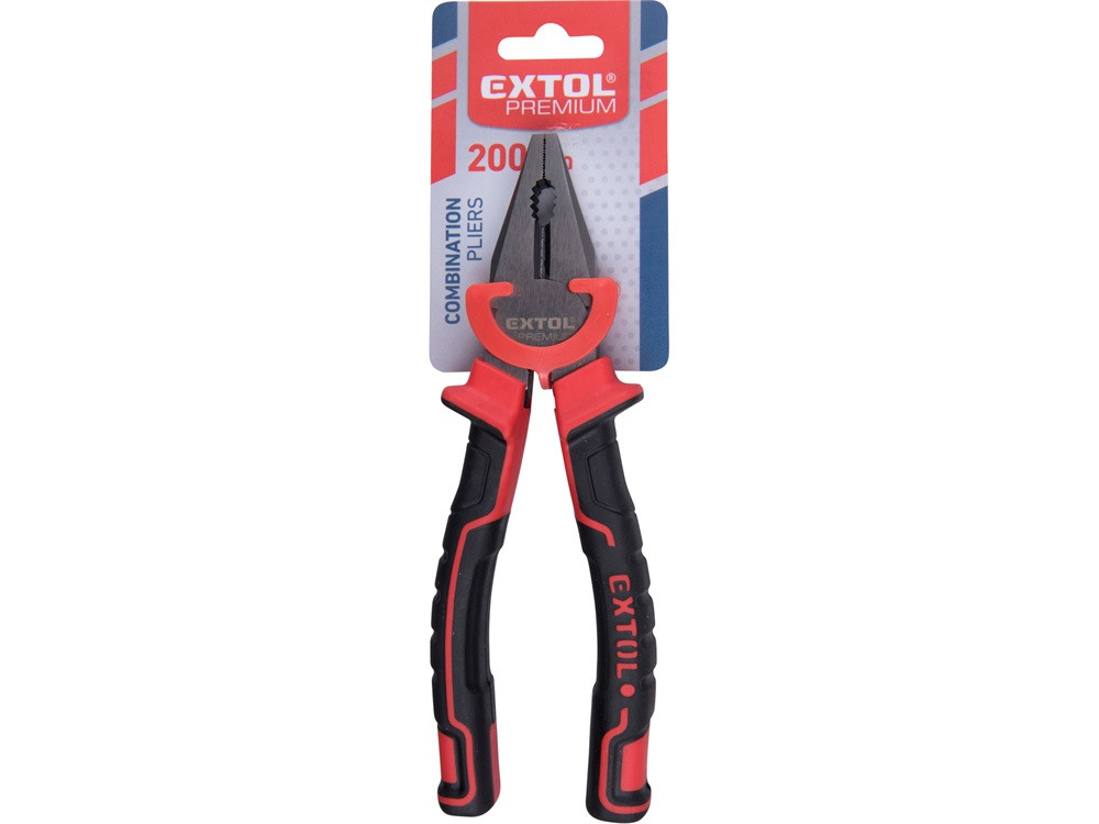 EXTOL PREMIUM  kombinált fogó, 200mm, duál  vörös/fekete, TPR nyél, akasztós szerszámtartó