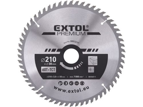 EXTOL PREMIUM körfűrészlap, keményfémlapkás, 210×30mm(lyuk átm), T40; 3,2mm lapkaszélesség, max. 7000 ford/perc