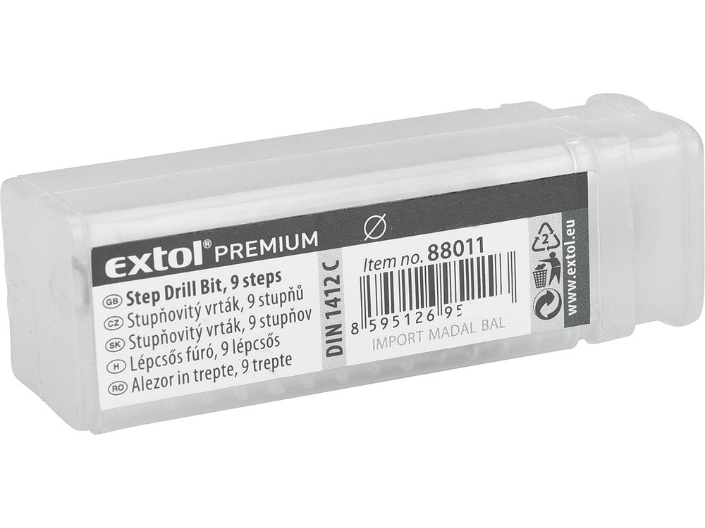 EXTOL PREMIUM lépcsős fémfúró HSS, 12 lépcsős (6-39mm, 3mm lépcsők)