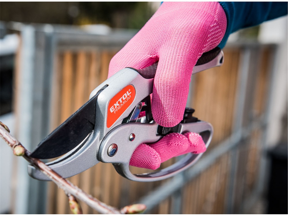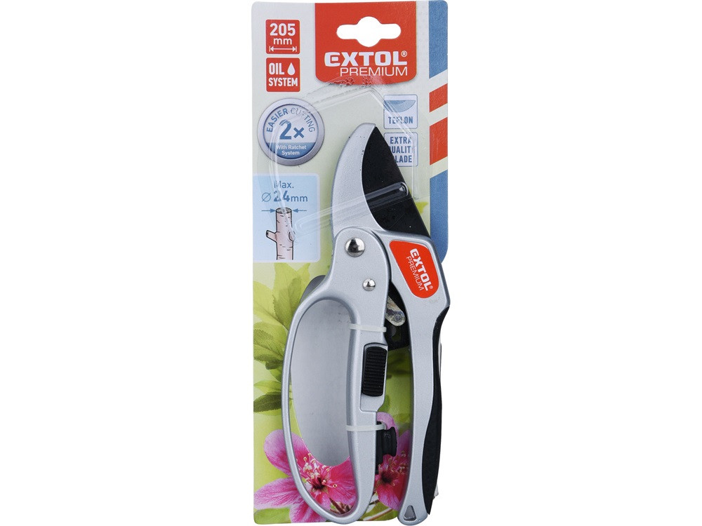 EXTOL PREMIUM metszőolló, mellévágó, racsnis, 205mm, tapadásmentes acél vágóél, max. 24 mm vágási kapacitás,gumírozott ALU nyél
