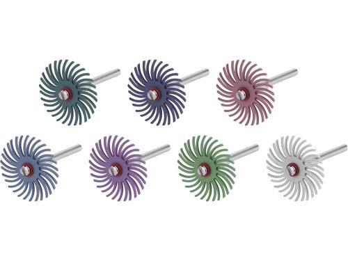 O25 mm-es radiális nylon csiszoló fejek 7 féle finomságban: P80×6 db, P120×6 db, P220×6 db, P400×6 db,P600×6 db,P1000×6 db,P2500×6 db,