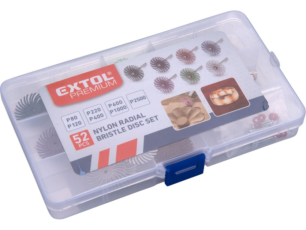 EXTOL PREMIUM mini csiszoló klt. radiális sörték, 3,0 mm befogás, 52 db, nylon
