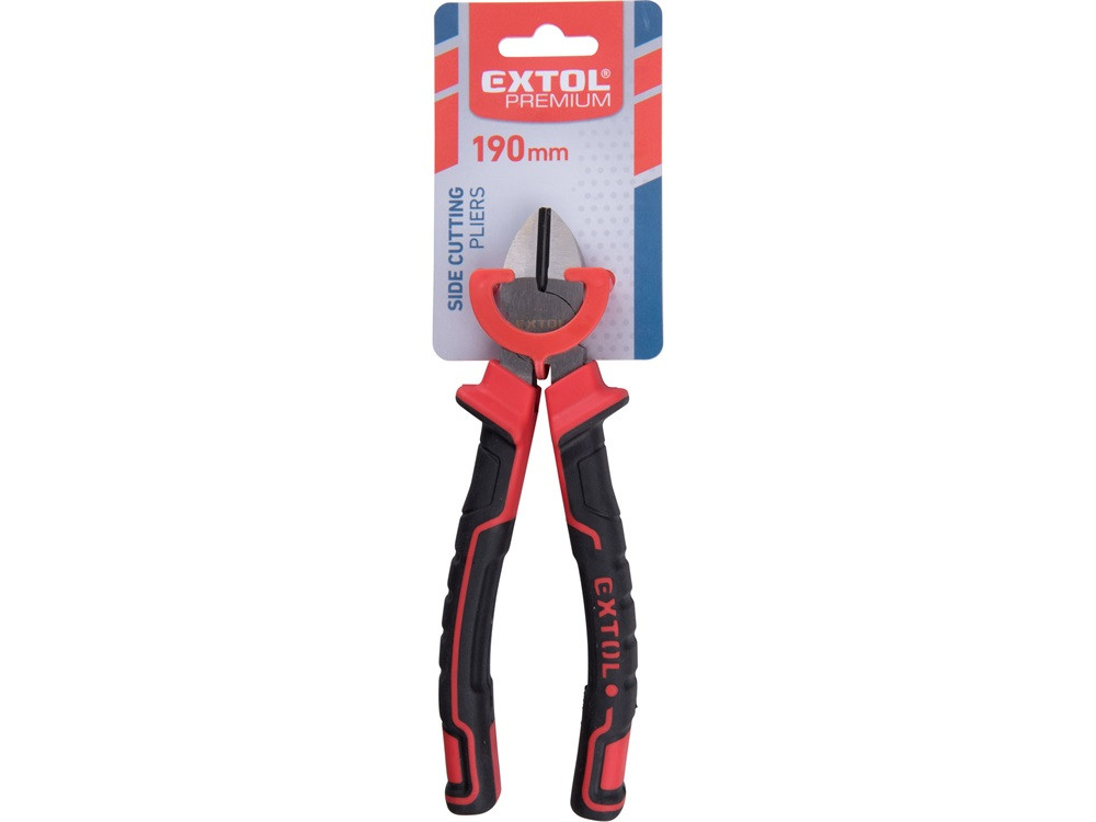 EXTOL PREMIUM  oldalcsípő fogó, 190mm, duál  vörös/fekete, TPR nyél, akasztós szerszámtartó