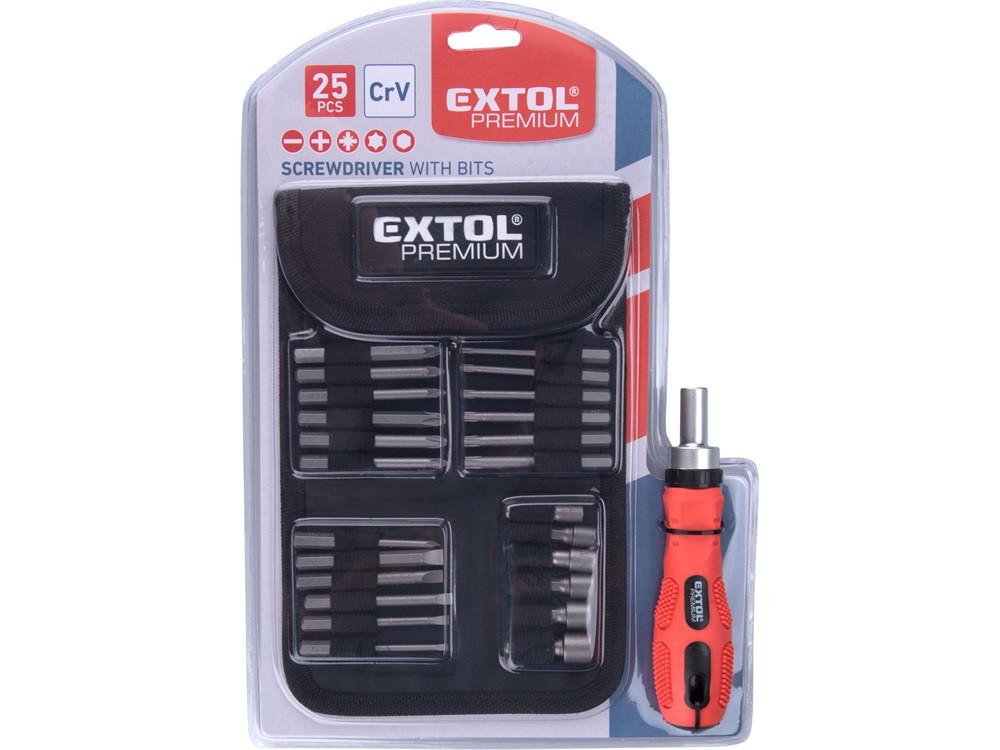 EXTOL PREMIUM racsnis csavarhúzó-dugókulcs klt., 25 db,  Cr.V. acél