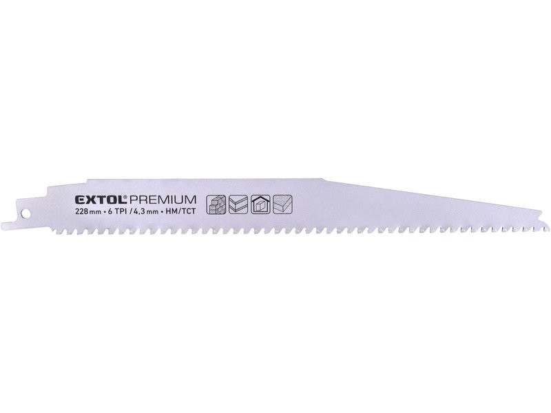 EXTOL PREMIUM szablyafűrészlap 1db, Bosch befogás, HM/TCT fogak, 228 mm, 6TPI, gázbetonhoz, tiszta, íves vágás