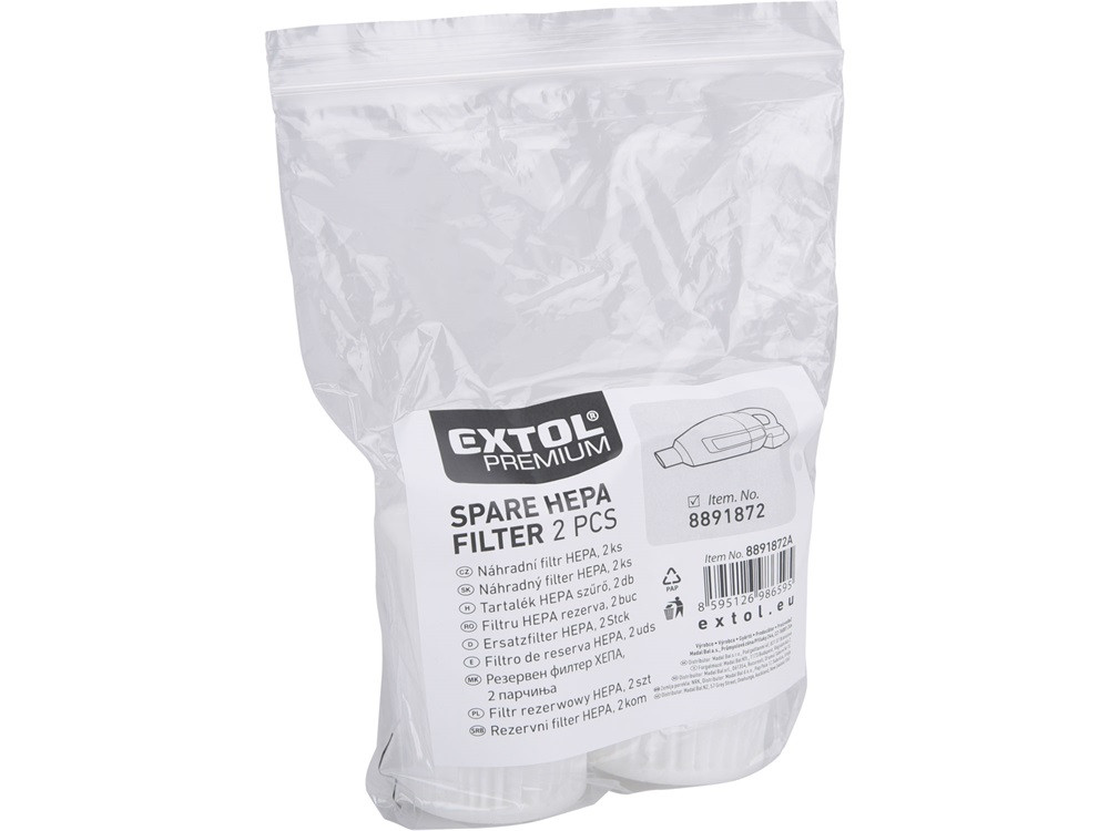 EXTOL PREMIUM tartalék HEPA szűrő klt., 2 db  a 8891872 és 73 porszívóhoz