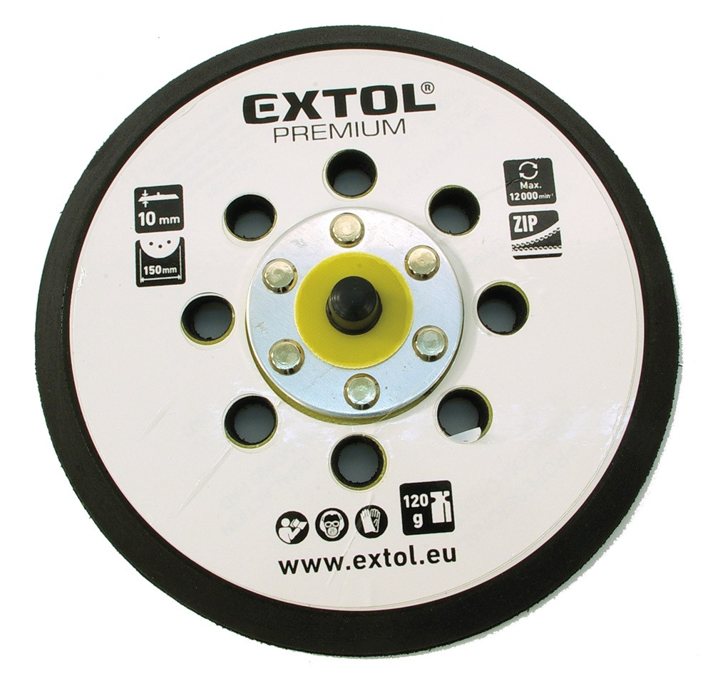 EXTOL PREMIUM tartalék gumi talp 8865038 rotációs csiszológéphez, 6"/150mm, 8 db lyuk, tépőzáras, max. 12.000/perc, vastagság: 10mm