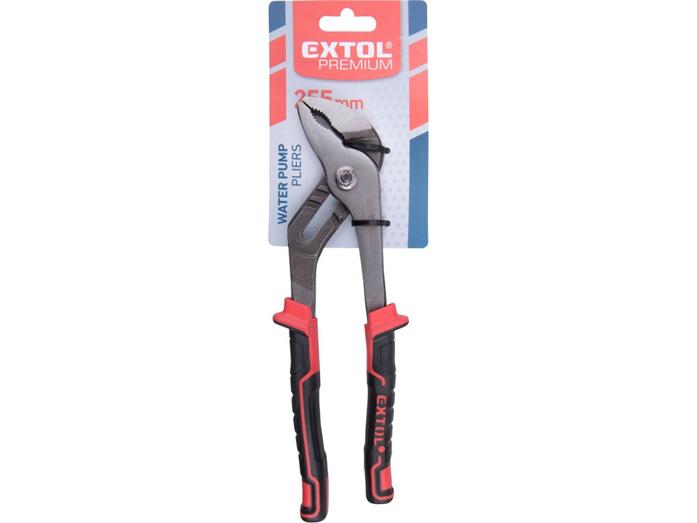 EXTOL PREMIUM vízpumpafogó, 255mm, TÜV/GS, TPR nyél, akasztós szerszámtartó; megcsúszásgátló, progresszív fogazás