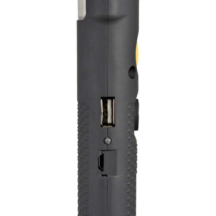 * Gumírozott felület * 300 lumen * 3,7 V-os, 2200 mAh-s Li-ion akkumulátor * 360 fokban elforgatható akasztóhorog * Beépített mágnes a hátlapon * USB és mikro-USB portok * Tartozék 110 V - 240 V AC/DC USB töltő 1,5 m-es mikro-USB kábellel * Fénynyaláb távolsága: 30 méter * Üzemidő: 2 óra * Töltési idő: 5 óra * IPx4