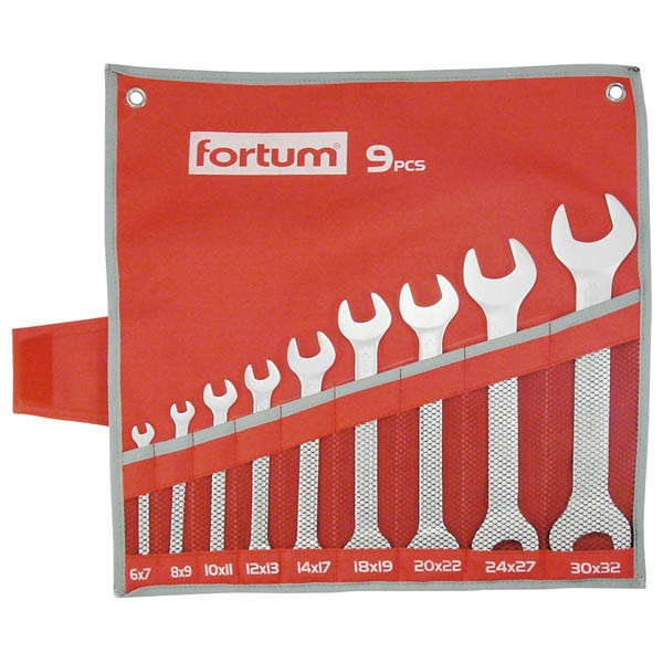 FORTUM csillagkulcs klt. 10db, 6-27mm 61CrV5 mattkróm; 6×7, 8×9, 10×11, 12×13, 14×15, 18×19, 20×22, 21×23, 24×27mm, vászon tok