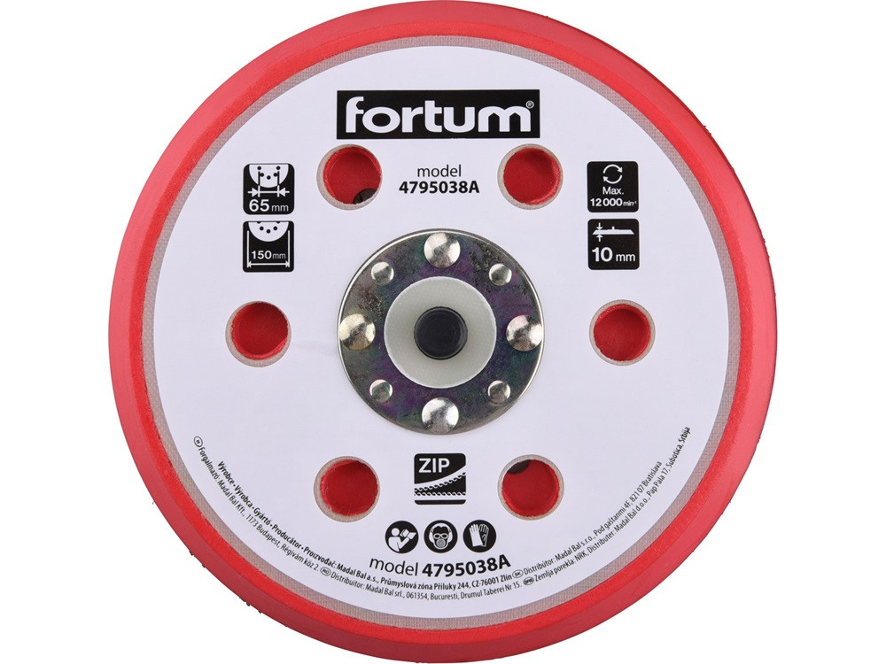 FORTUM tartalék gumi talp 4795038 rotációs csiszológéphez, 6"/150mm, 6+16 db lyuk, tépőzáras, 12.000 f/perc, vastagság:10mm