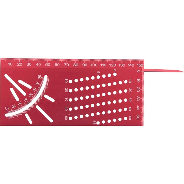 két befogó oldalon mm beosztás, az átfogó oldalon 0-90° ferde beosztás szögméréshez: 5-15-25-35-45-55-65-75°