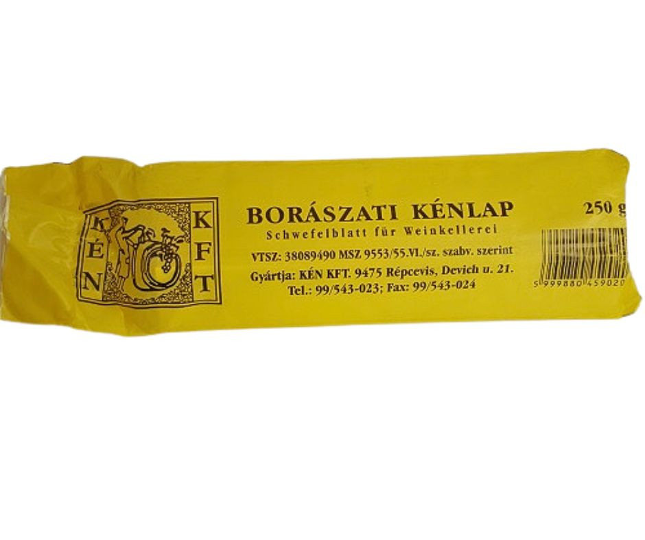 A kénlap egy szeletje 1 hl űrtartalmú hordó kénezéséhez