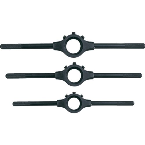 Süllyesztékben kovácsolt tömör acél konstrukció hosszú élettartamra, recézett, jó fogású hajtókarral. Különböz' méretű kör alakú hasított menetmetsz'k befogására alkalmas. Könnyű és stabil rögzítés három szorítócsavarral, mely precíz, pontos menetmegmunkálást eredményez.