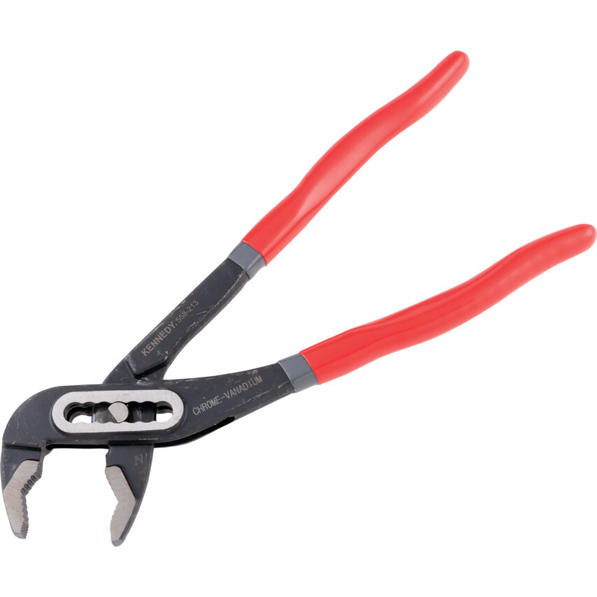 Az áttűzött csukló megakadályozza a vízpumpafogó 'elcsavarodását' szorítás esetén. Induktívan edzett, köszörült szorítópofák. Lyukraszterrel állítható. Selyemfényű kivitel.