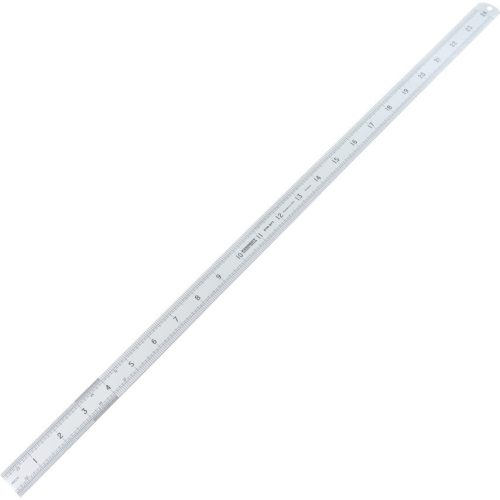 Kiváló minőségű rugalmas megeresztett rozsdamentes acél. Matt krómozott kivitel, kopásálló fekete skálabeosztás és számok. Könnyen leolvasható. A teljes hosszra vonatkozó pontosság: ±0.2 mm. Rozsdamentes.