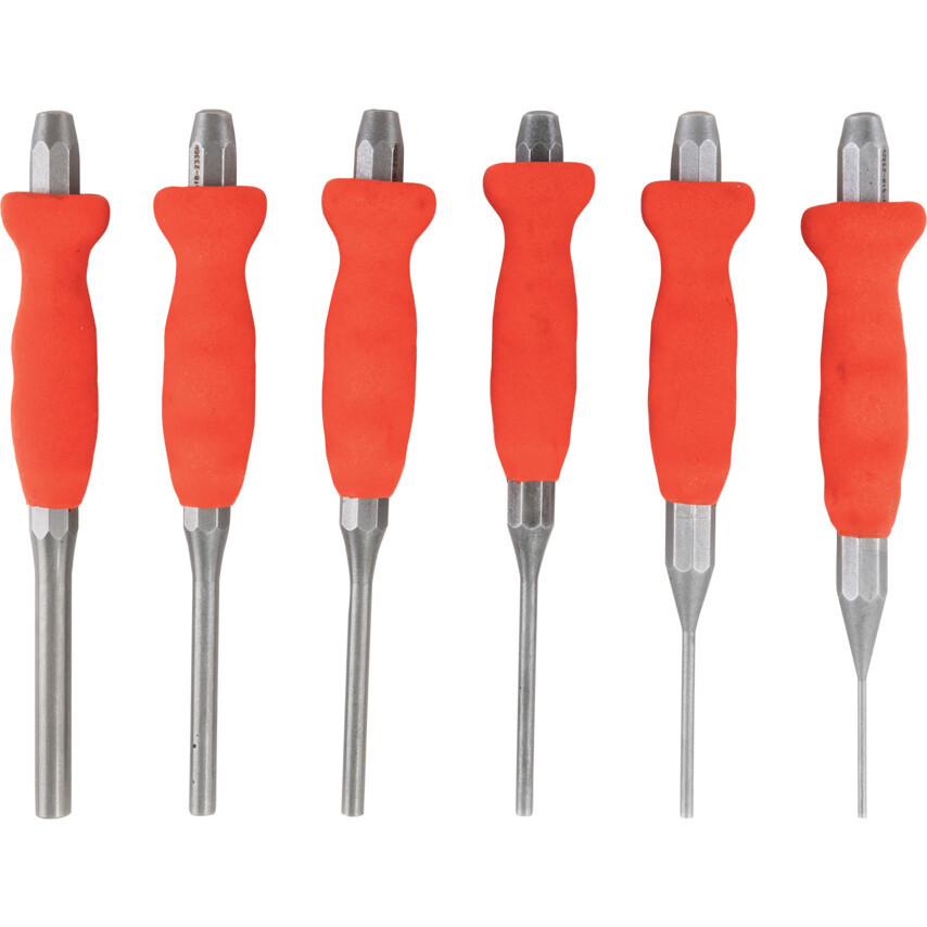 Ideális a beszorult illeszt'szeg mechanikai szerelvényb'l való eltávolításához, vagy a furat csapszeghez való hozzáigazításához. Anyaga edzett és keményített acél. Air-grip markolattal ellátva, amely felfogja a rázkódás és a félrecsúszott kalapácsütések erejét. Teljes hossz: 150mm (6").