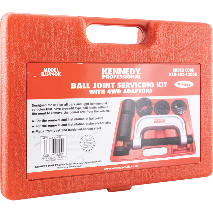 Az öntöttvasból és edzett karbonacélból gyártott készletet szoros illesztésű gömbcsuklók leszerelésére tervezték, a szabályozókar eltávolítása nélkül. A készlet használható fékpofa forgócsapok eltávolítására, és univerzális csuklócsapágyak szerelésére is.