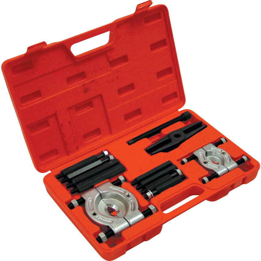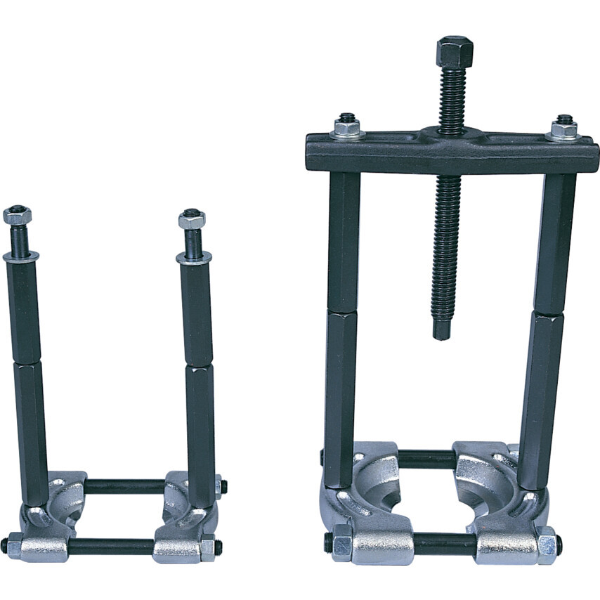 Csapágyak, fogas­kerekek, lánckerekek és perselyek eltávolítására. Műanyag tárolótáskában. A készlet tartalma: 1x 7" nyomócsavar, 1x 30-50 mm-es leválasztó, 1x 50-75 mm-es leválasztó, 2x 80 és 100 mm-es vezet'rúd, 2x 90 és 110 mm-es hosszabbító rúd, 1x tartórúd.