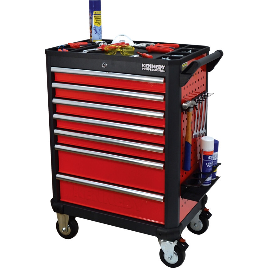 Kennedy PIROS 7 FIÓKOS PROFI GÖRGŐS SZERSZÁMOS KOCSI/SZERSZÁMSZEKRÉNY