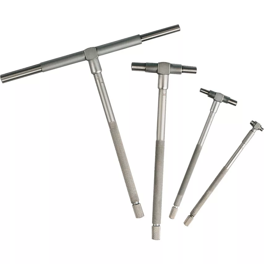 Recézett selyemkróm szár, edzett és köszörült mér'csapok bels' átmér'k pontos méréséhez, mikrométer használatával. Kisebb bels' átmér'k méréséhez használjuk a 3-13 mm mérési tartományú kis furatmér' készletet.