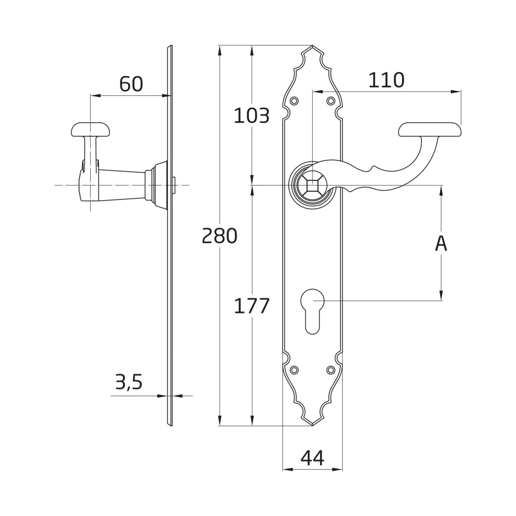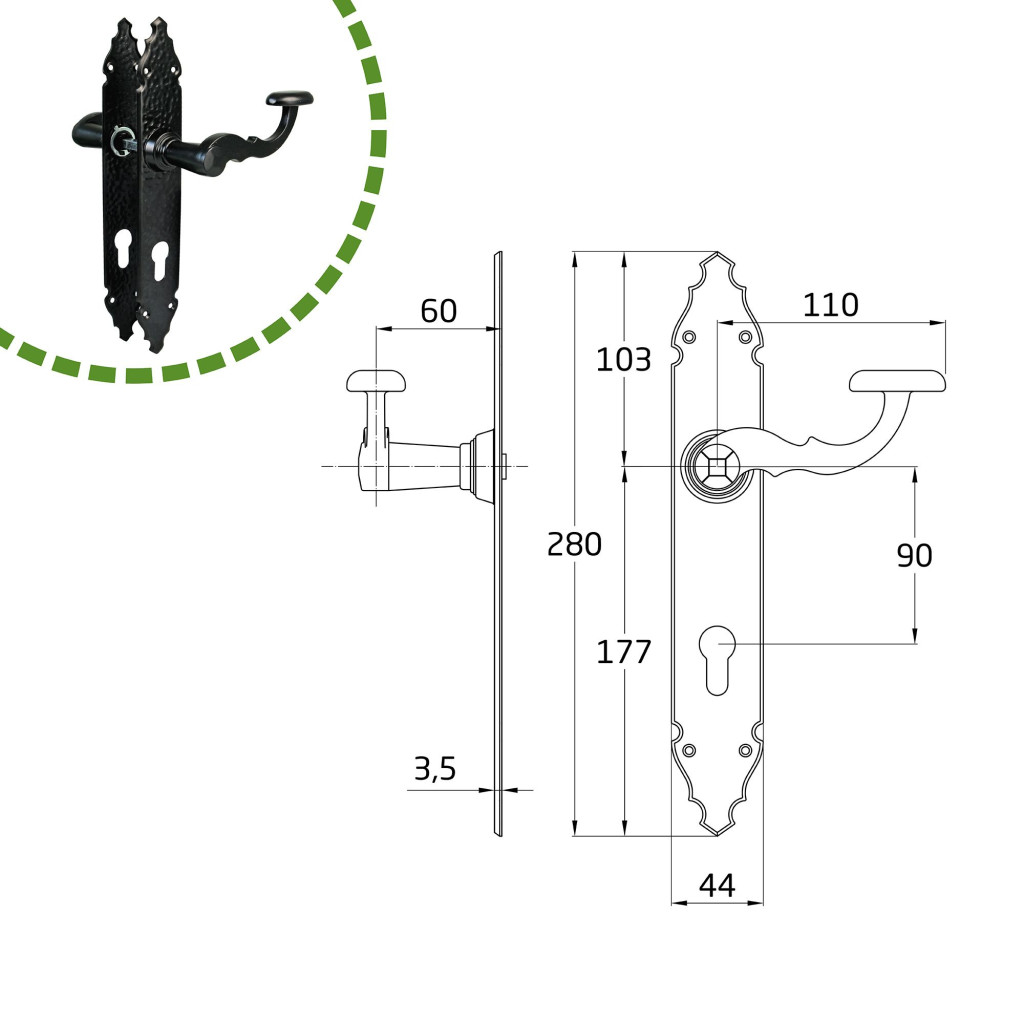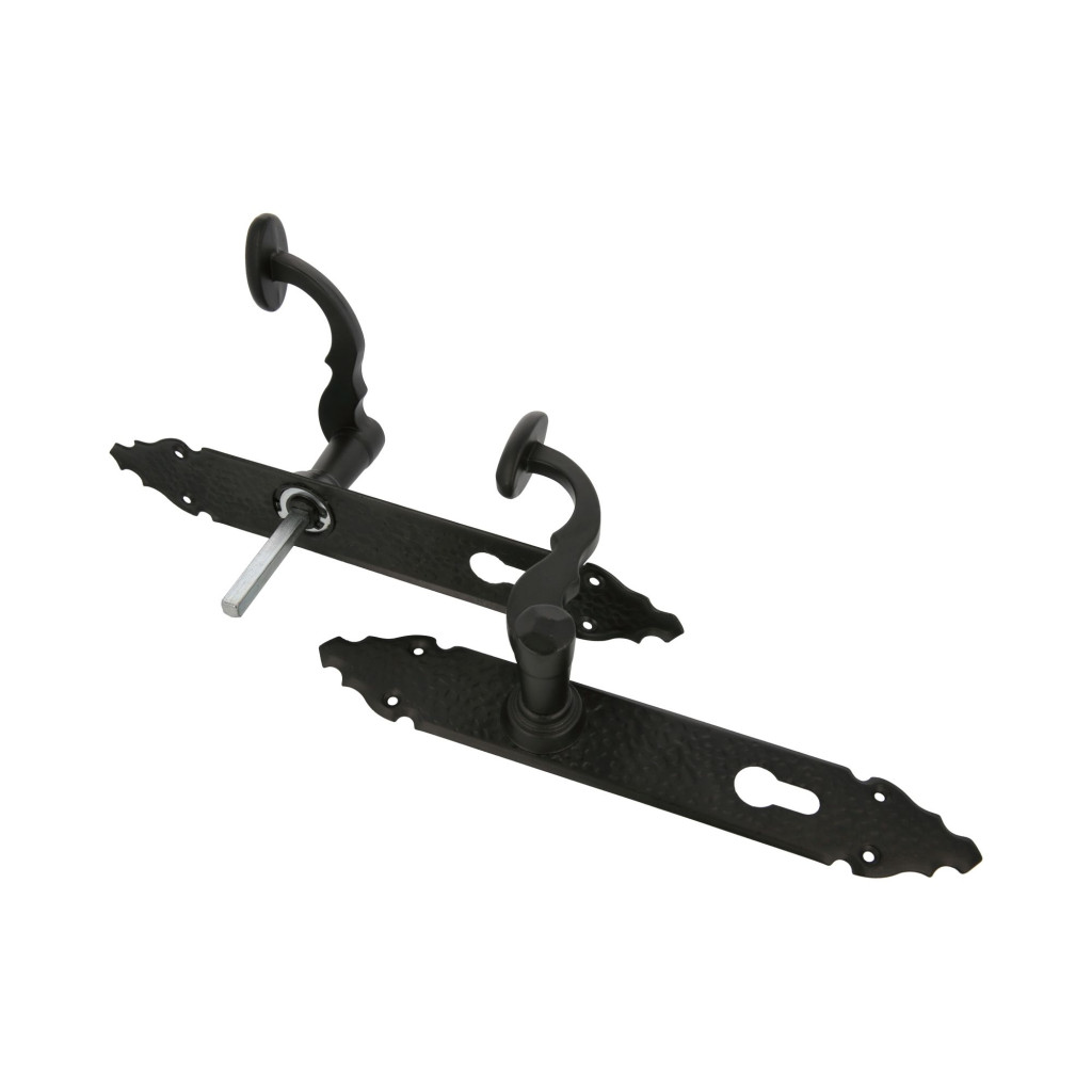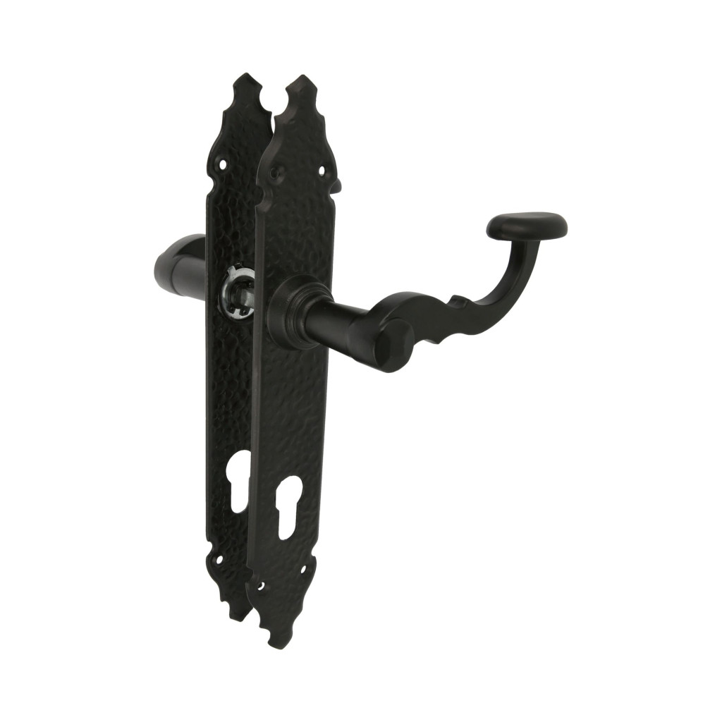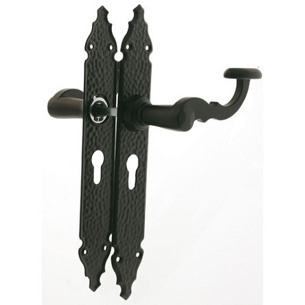 Kilincsgarnitúra festett fekete, 90mm cilinderes, rusztikus hatású