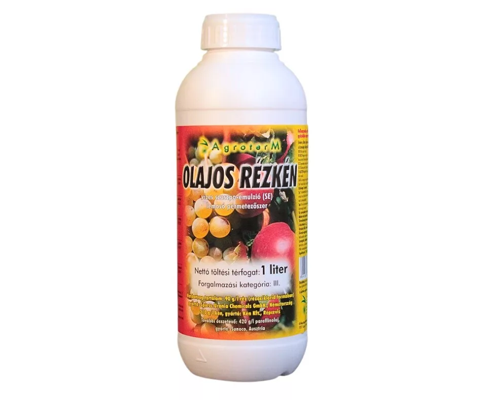 Az Olajos rézkén gyári kombináció tartalmazza a rézoxikloridot, a ként és az ásványi olajat, így egy készítménnyel védekezhetünk nyugalmi állapotban a baktériumos és gombás eredetű betegségek és kártevők ellen.