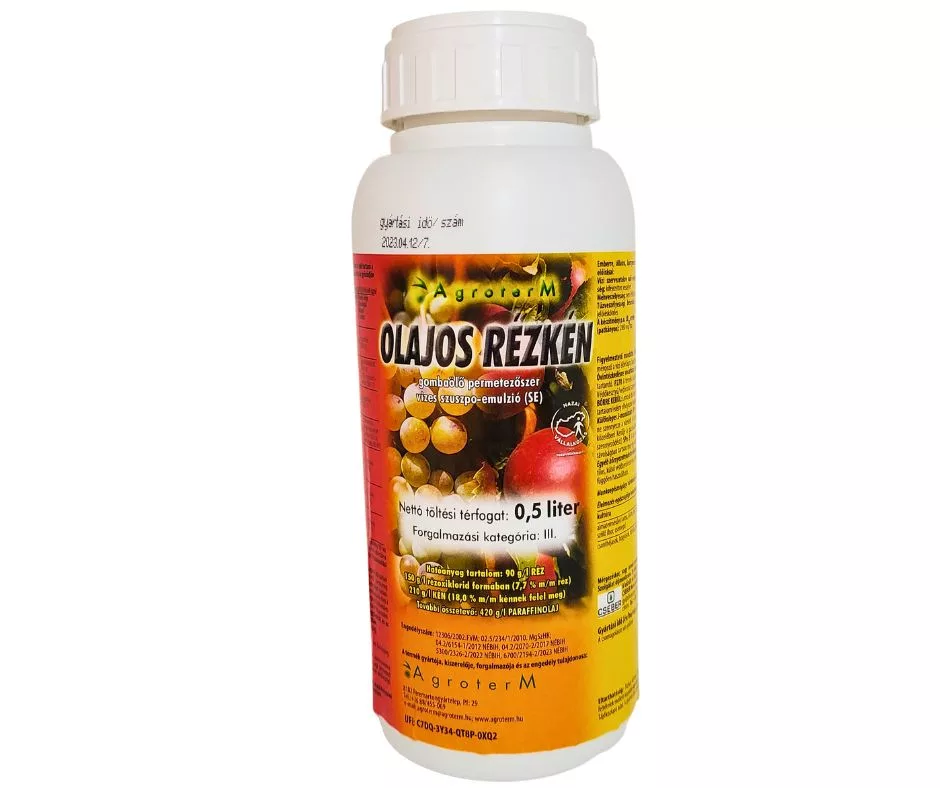 Az Olajos rézkén gyári kombináció tartalmazza a rézoxikloridot, a ként és az ásványi olajat, így egy készítménnyel védekezhetünk nyugalmi állapotban a baktériumos és gombás eredetű betegségek és kártevők ellen.