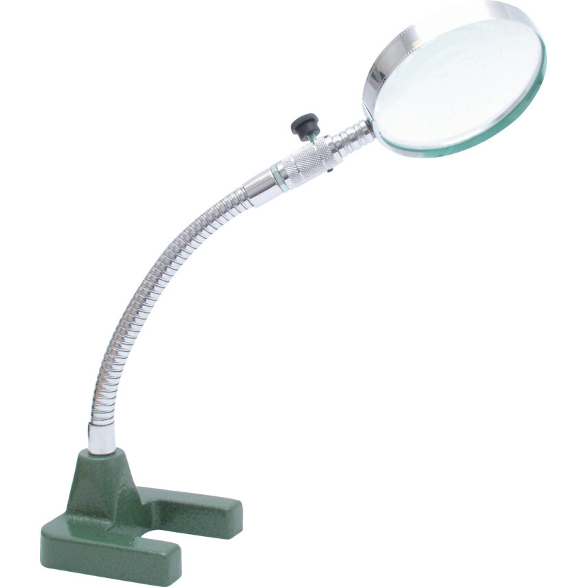 89mm (3 1/2") átmérőjű lencse. 2x nagyítás. Krómozott sárgaréz keret. 180mm-es flexibilis szár. Alkalmas nagy precizitást igénylő munkákhoz, minőségellenőrzéshez, olvasáshoz, hobbi célokra stb.