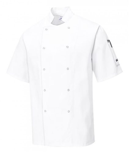 Modern és kifinomult új séfkabát modell, mely minden igényt kielégít. Strapabíró, könnyű alapanyagból, mely garantálja a jó megjelenést a rendszeres mosási ciklusok után is. Mandarin gallérral és tolltartó zsebbel.