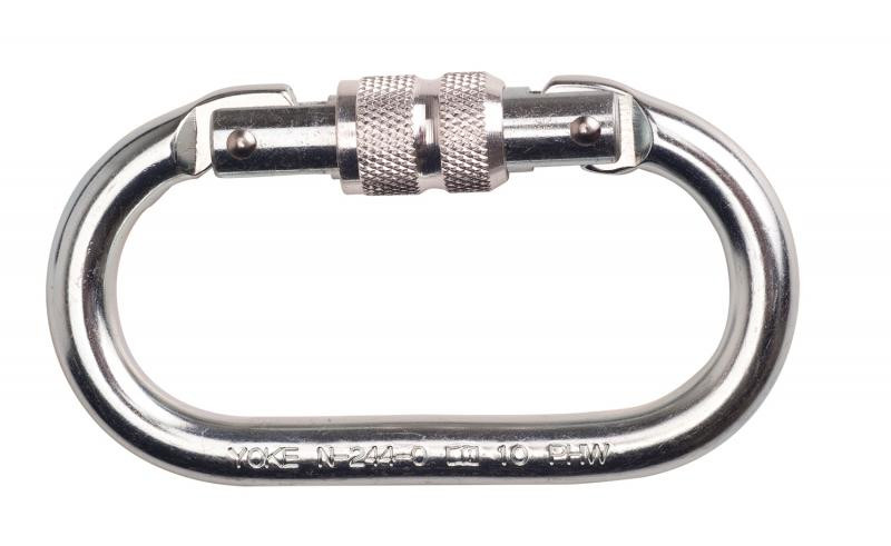 Acél ovális karabiner csavaros zárral, hossz: 106mm, nyílás: 19 mm. Törőterhelés: 25kN.