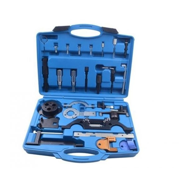 A készlet minden szükséges eszközt tartalmaz a főtengely és vezérműtengely rögzítéséhez, az üzemanyag befecskendező szivattyú és a vízpumpa ki és összeszereléséhez.